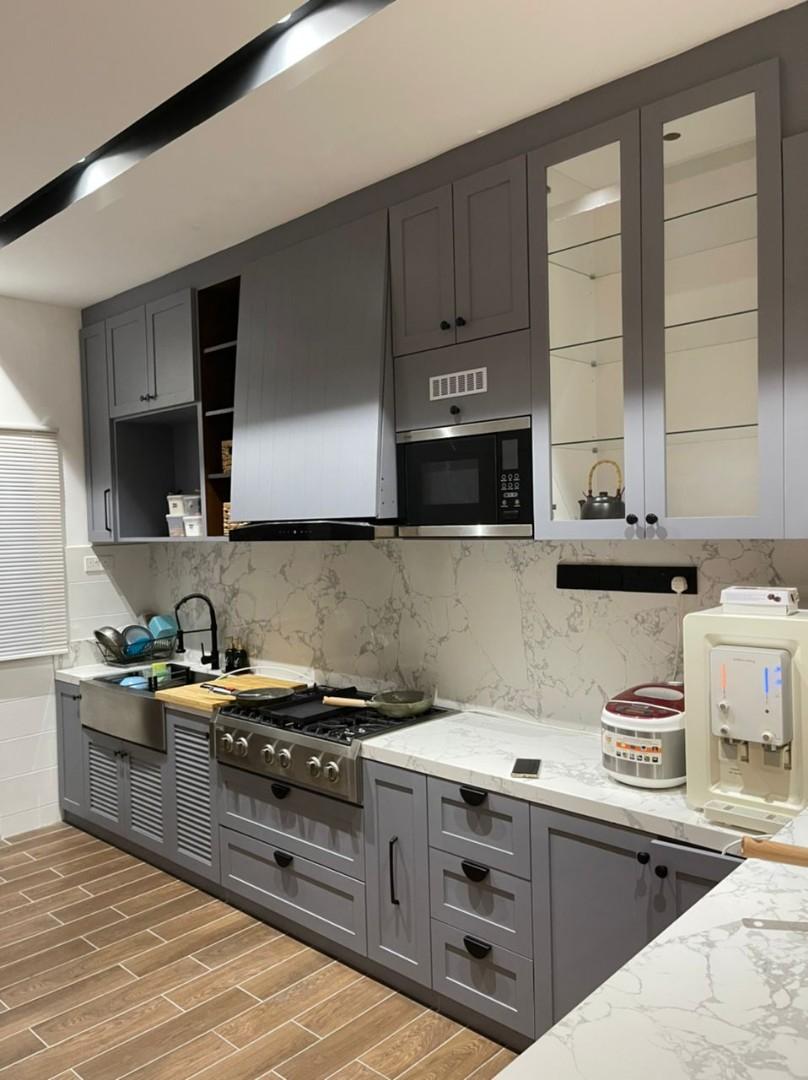 Kalis air tidak kembang kena air lebih lebih lagi di bahagian sinki. MDF plywood ataupun solid wood. S Quality Grey Shaker Solidwood Kitchen Cabinet Promotions.